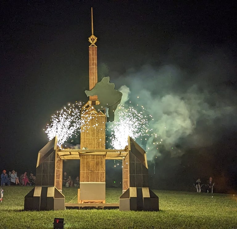 Flaming Cheese Burn is an event based on the 10 Principles of Burning Man plus the 11th Principle of Consent, bringing people together to spark collaboration and creativity, produce and perform art, and inspire a sense of culture, community, and civic participation. FCB is art-centered, family-friendly, and radically inclusive.